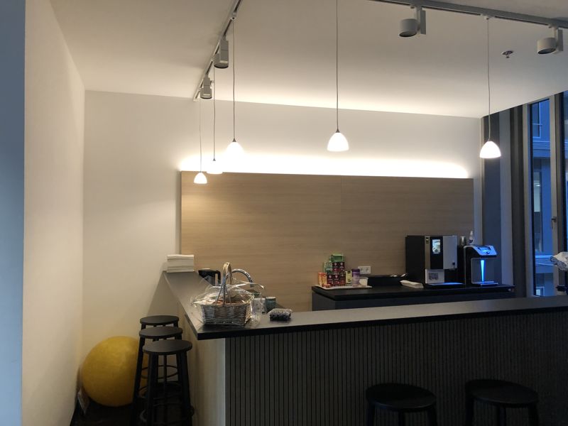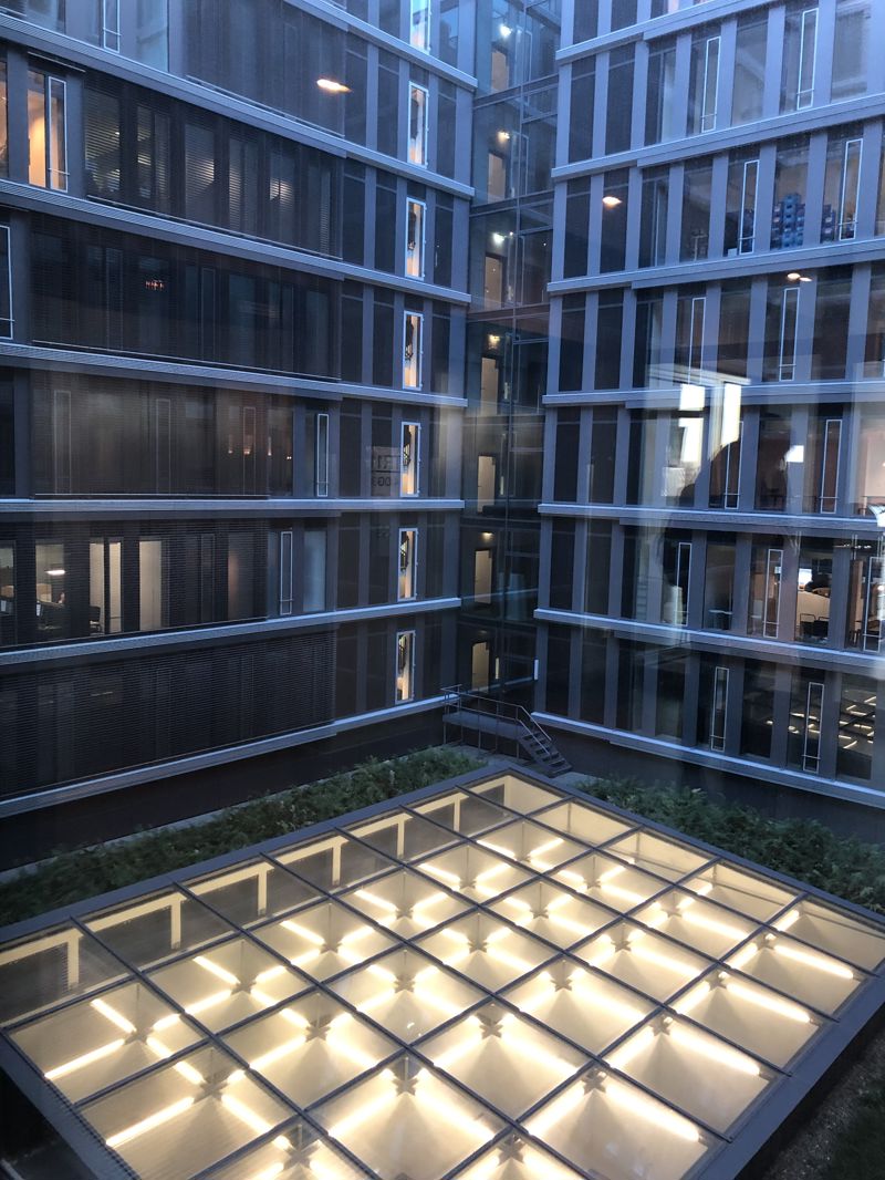Außerdem wurden neue Raum-in-Raum-Systeme (als „Denker“- oder „Telefon-Zellen“) eingebaut, die über eine eigene dezentrale Lüftung (Umluft-Prinzip) verfügen. Alle Raum-in-Raum-Systeme wurden in den Sprinkler-Schutz einbezogen. Die Elektro- und Dateninstallation zu den Arbeitsplätzen wurde vollständig neu aufgesetzt, einschl. neuer Bodentanks (Elektranten) entsprechend der Arbeitsplatzanordnung. Der Umbau erfolgte geschossweise mit umsetzen der Mitarbeiter in das jeweils fertig gestellte Geschoss und wurde in einer Bauzeit von 14 Monaten durchgeführt.