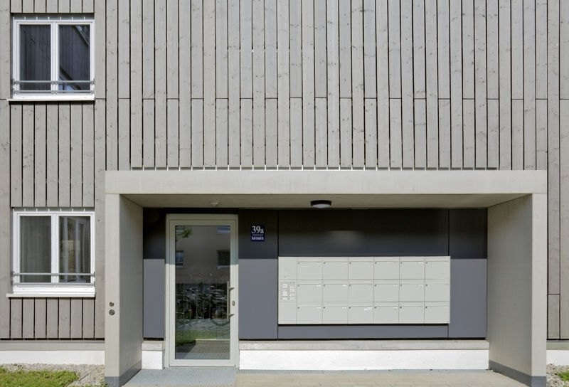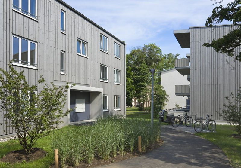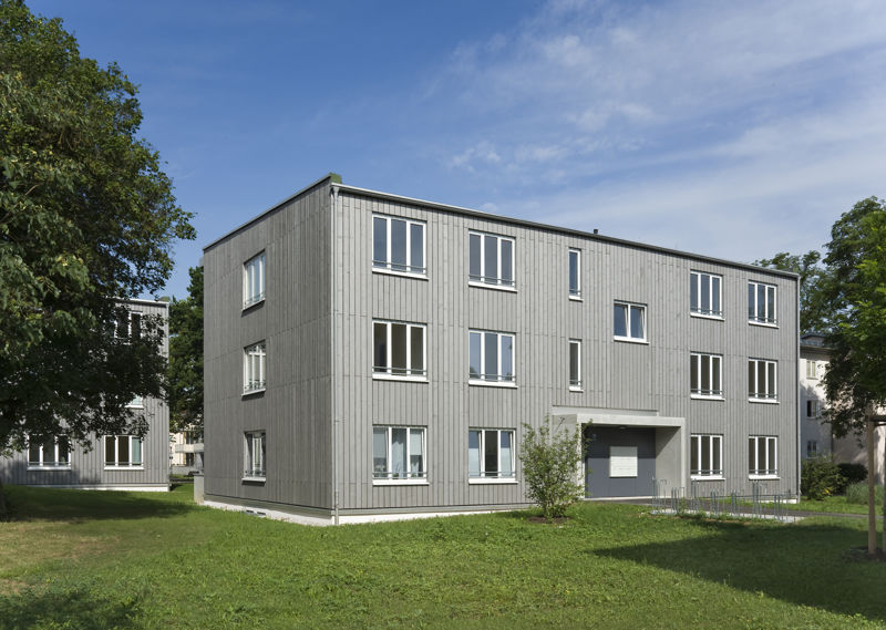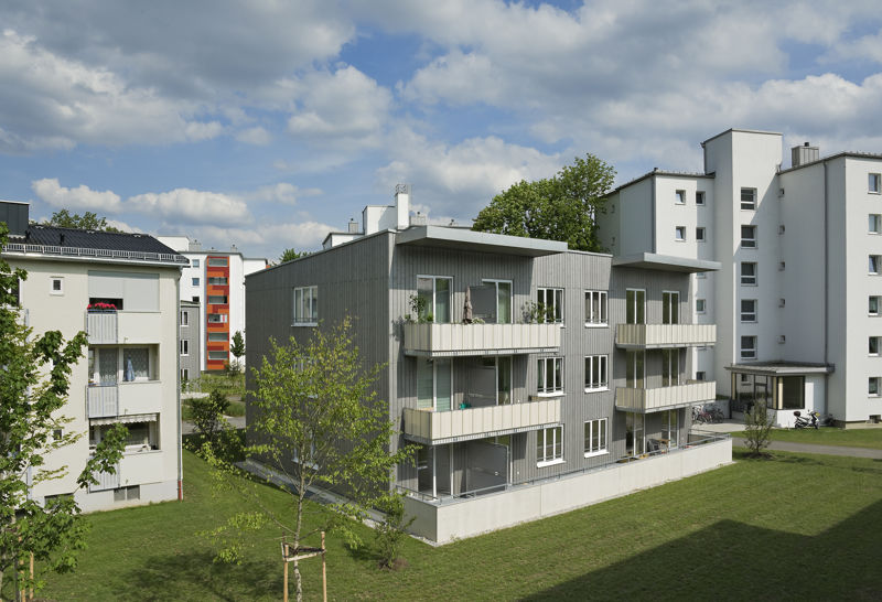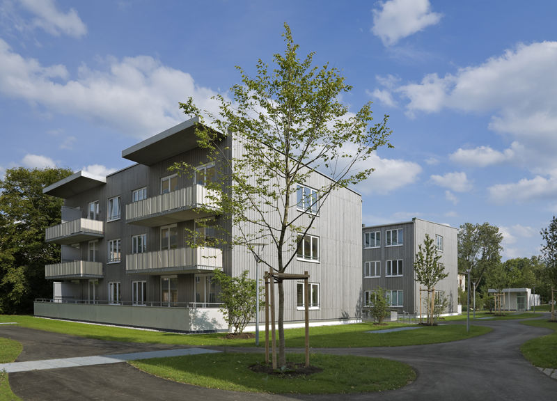 Es handelt sich um einen Geschosswohnungsbau mit 93 WE mit unterschiedlichen Wohnungstypen von 2-WR-Wohnungen für 1 Person bis 4-WR-Wohnungen für 4 oder mehr Personen. Das Projekt besteht aus zwei 6-geschoßigen Gebäuden in Massivbauweise und sieben 3-geschoßigen Gebäuden in Holzhybridbauweise. Die Wohnungen sind barrierefrei gemäß BayBO. Die dreigeschossigen Häuser sind mit Decken und Treppenhauskernen in Stahlbeton ausgeführt, die Außenwände als fertig angelieferte Holzwandelemente mit vormontierten Fensterelementen. Die sechsgeschossigen Häuser sind in Massivbauweise mit verputzten Außenwänden aus Mauerwerk ausgeführt.