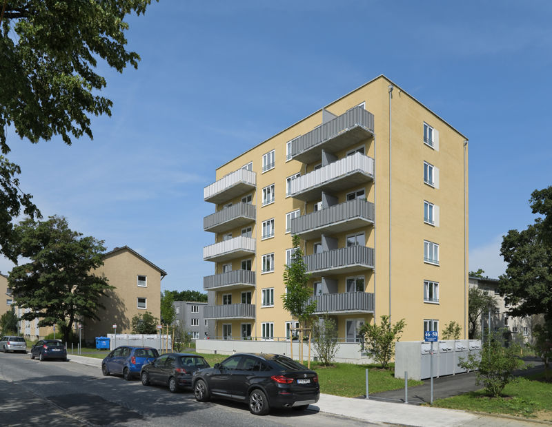 Eine zweigeschossige Tiefgarage mit insgesamt 140 Stellplätzen steht für die Bewohnerinnen und Bewohner der neuen Häuser sowie für die Mieter der Bestandsgebäude zur Verfügung. Die Neubauten entstanden als Nachverdichtung in enger Nachbarschaft zu den bestehenden Gebäuden aus den 1960 Jahren. Bei der Abwicklung musste besondere Rücksicht auf die Erschließung und Verkehrswegeführung der Nachbarschaft genommen werden. Die besondere Herausforderung bestand in der aufwendigen Planung der Baustelleneinrichtung, der Logistik für Baubetrieb, Erschließungsmaßnahmen und Rettungswegen. Die Baumaßnahme konnte in sehr kurzer Bauzeit termingerecht und unter Einhaltung des Kostenrahmens an den Bauherrn übergeben werden.